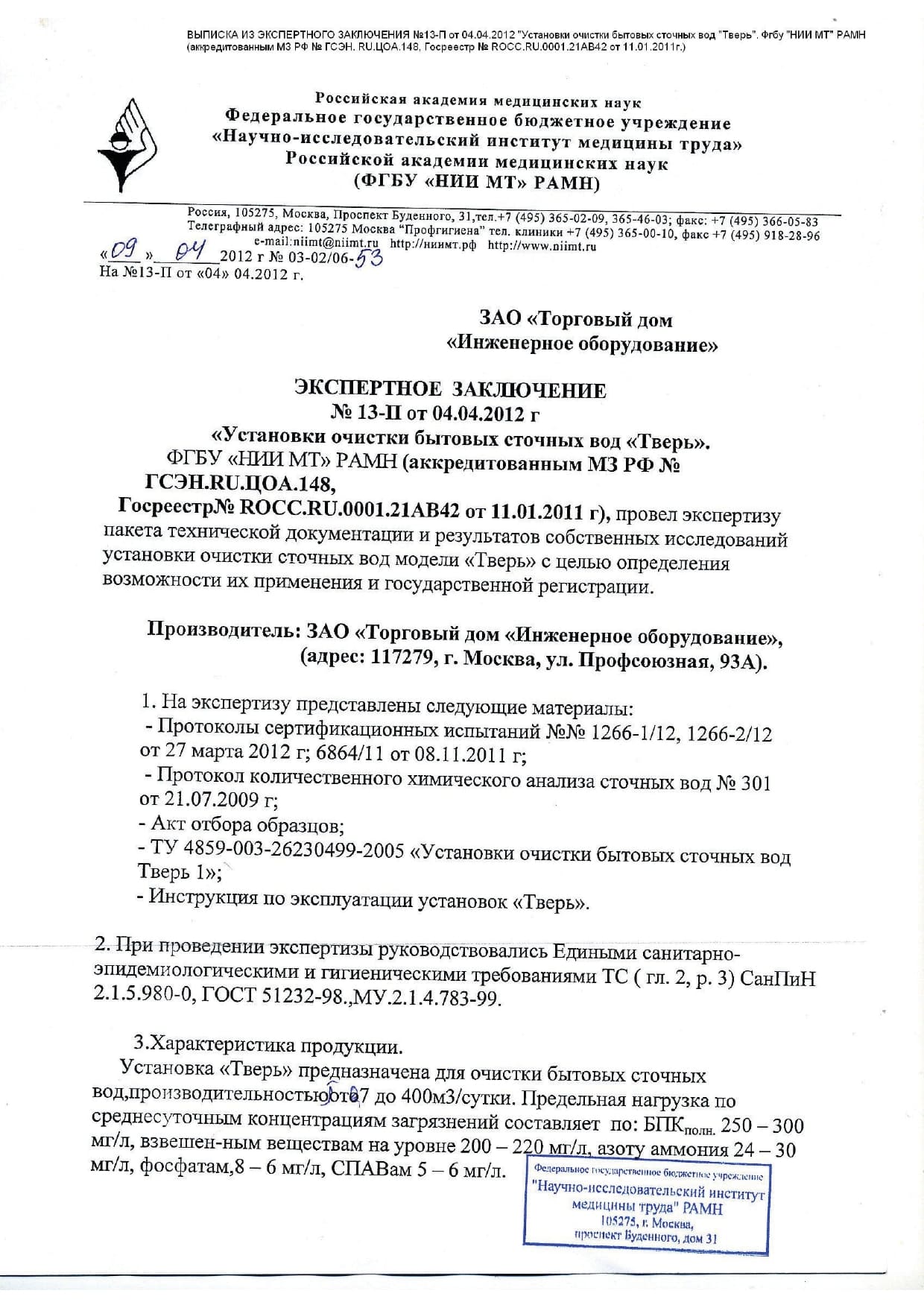 Септики Тверь производятся компанией «Торговый Дом «ИНЖЕНЕРНОЕ ОБОРУДОВАНИЕ», которая занимается не только производством, но и разработкой очистных сооружений. В ассортименте представлены модели надёжных септиков для локальных жилых объектов, населённых пунктов и производственных предприятий.